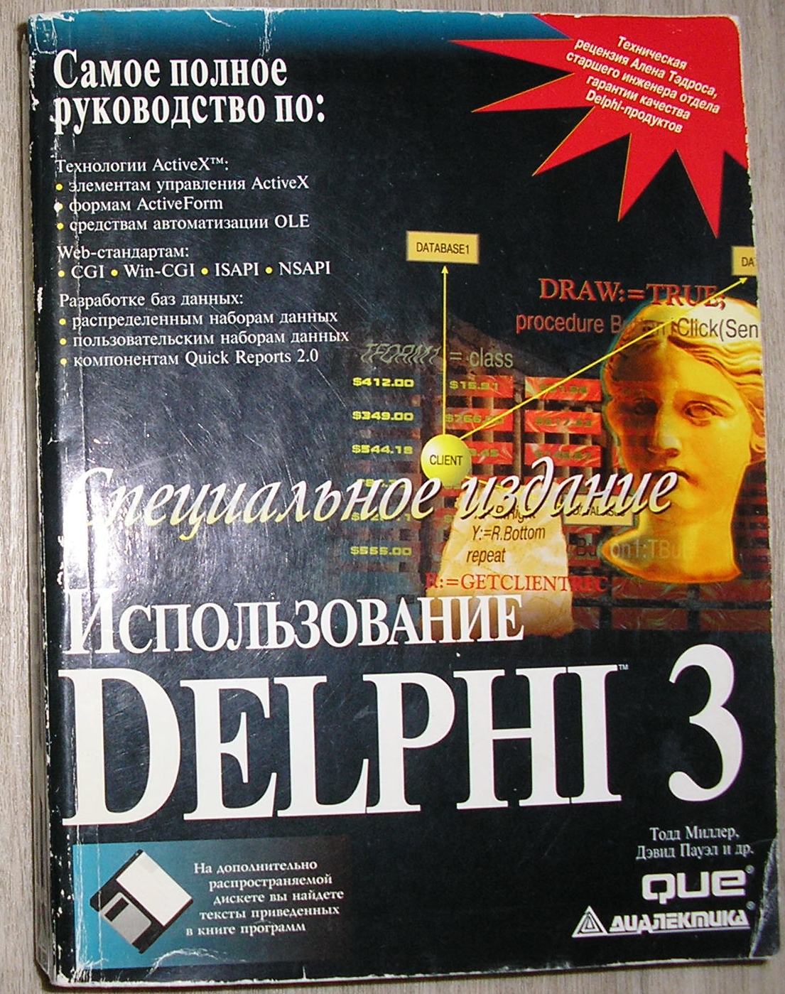 Аннотация: Тираж 3 000 экз. Это издание представляет собой коллекцию ответов на нетрадиционные вопросы программирования на Delphi, нестандартных решений, интересных идей. Примеры рабочего кода, которые создавали многие программисты, собирались более двух лет и охватывают широкий круг вопросов: реализацию математических алгоритмов и работу с функциями Windows API, применение массивов, работу с графикой, а также управление рабочим столом, реестром, папками и файлами Windows, форматирование дискет, взаимодействие с аппаратным обеспечением. Значительное внимание уделено базам данных: таблицам dBASE и Paradox, настройке Delphi для работы с базами данных, подключению сервера Oracle или InterBase, особенностям использования SQL. Те, кто интересуется мультимедиа, найдут в книге советы ...