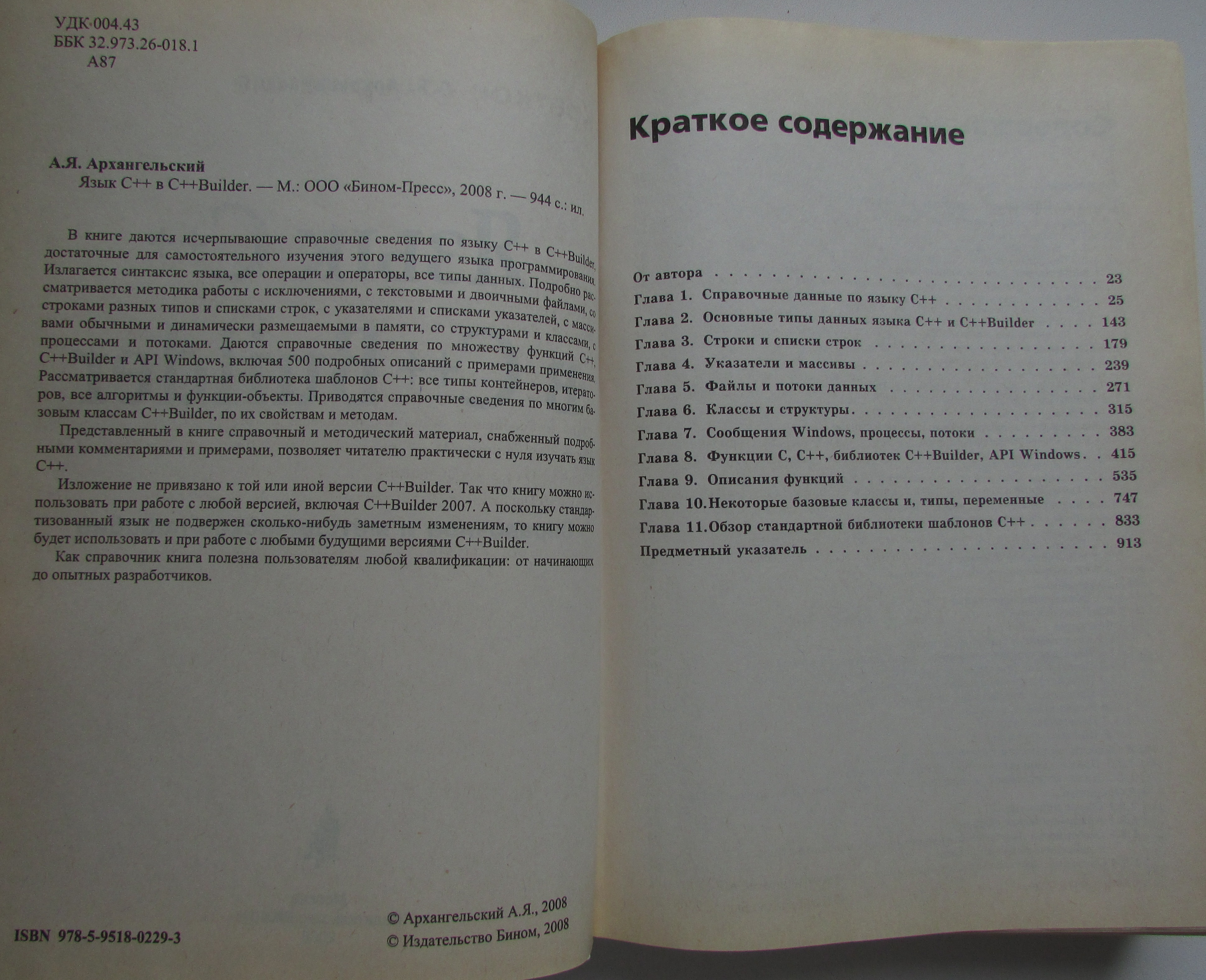 Аннотация: Тираж 4 200 экз. В книге даются исчерпывающие справочные сведения по языку C++ в C++Builder, достаточные для самостоятельного изучения этого ведущего языка программирования. Излагается синтаксис языка, все операции и операторы, все типы данных. Подробно рассматривается методика работы с исключениями, с текстовыми и двоичными файлами, со строками разных типов и списками строк, с указателями и списками указателей, с массивами обычными и динамически размещаемыми в памяти, со структурами и классами, с процессами и потоками. Даются справочные сведения по множеству функций C++ в С++Builder и API Windows, включая 500 подробных описаний с примерами применения. Рассматривается стандартная библиотека шаблонов C++: все типы контейнеров, итераторов, все алгоритмы и функции-объек ...