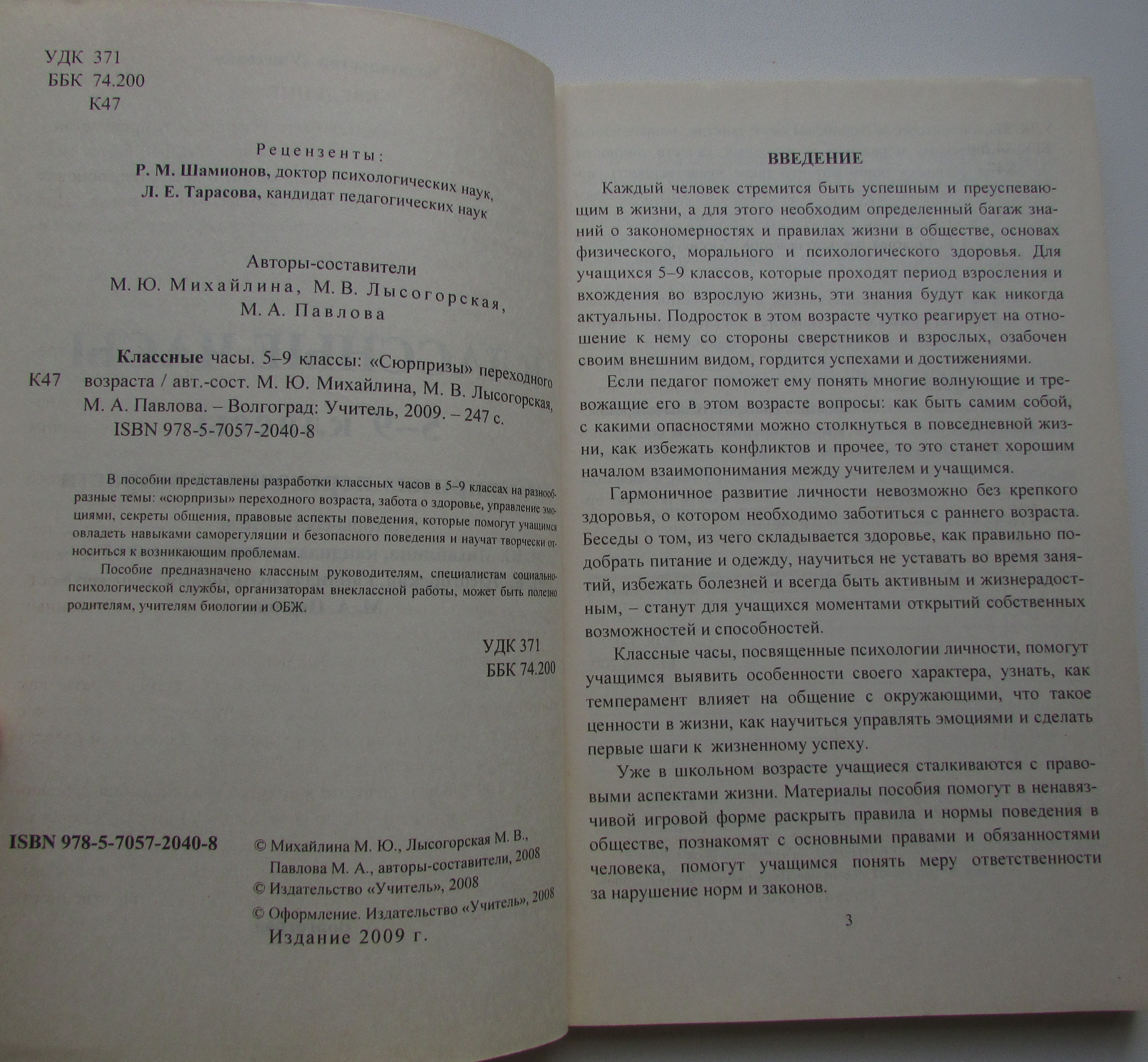 Аннотация: Тираж 22 000 экз. В пособии представлены разработки классных часов в 5-9 классах на разнообразные темы: сюрпризы переходного возраста, забота о здоровье, управление эмоциями, секреты общения, правовые аспекты поведения, - которые помогут учащимся овладеть навыками саморегуляции и безопасного поведения и научат творчески относиться к возникающим проблемам. Предложенные материалы помогут педагогам определять приоритетные позиции в планировании воспитательной работы в соответствии с требованиями ФГОС, системно моделировать разные формы классных часов (деловая игра, интерактивная беседа, размышления, тест, практикум) по актуальным для обучающихся вопросам, связанным с физическим, моральным и психологическим здоровьем, приобретением умения делать первые шаги к жизненному ...
